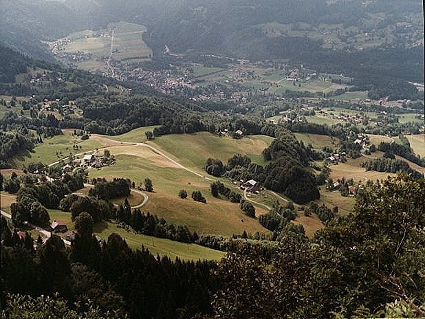 | Looking down into the town of Samoens. | ||