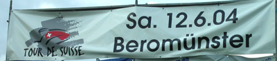 June 12th was our first day on the bikes. We left our hotel in Lenzburg at 0930 and rode about twenty-five flat miles to Beromünster which was the stage finish town. We continued on to Sursee - the start village which was about 5 additional miles. The route was very interesting as it made a figure eight around several large lakes in the Lucern area. We spent some time watching the team introductions then hit some of the riders up for autographs and pictures. The riders were very friendly and accomodating to the fans. After watching the start we rode the hilly 24 km finish circuit around Beromünster and watched the finish. Jan Ullrich won the stage and became the early race leader. Our ride today was about 75 miles (121 km) on mostly flat ground with some rain. There was one catigory 4 climb on the finishing circuit.