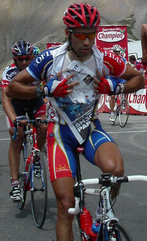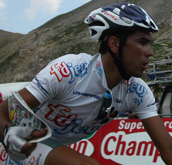 Racers putting newspapers in their jerseys for the descent fom the Col d'Izoard.