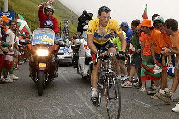 We split up in two groups today. Joe, Steve and I rode out from Lourdes to watch the race towards the beginning. We climbed the Tourmalet in 2001 and decided to not go into the mountains today. Greg, Scott, and Cameron did a big loop from Lourdes via the Tourmalet. Greg rode up Luz-Ardiden and watch the stage from there. The rest of us opted for the TV. Lance Armstrong won the stage after the now famous crash caused by a "Credit Lyonaise" souvenir bag on the way up.